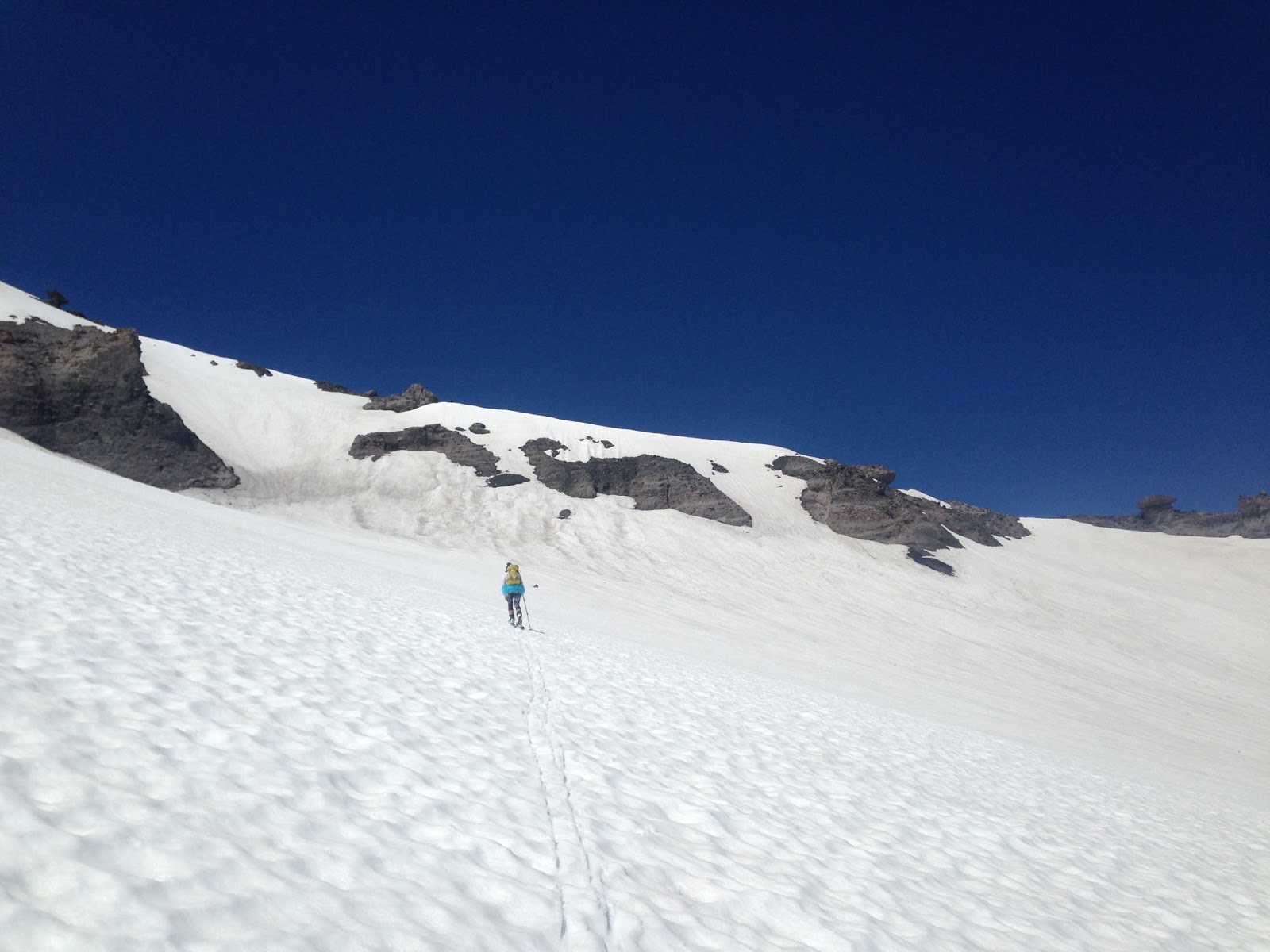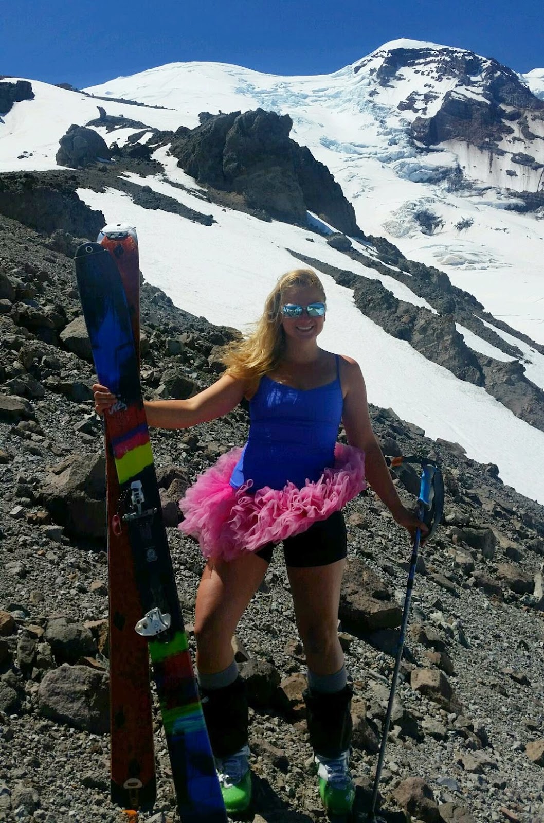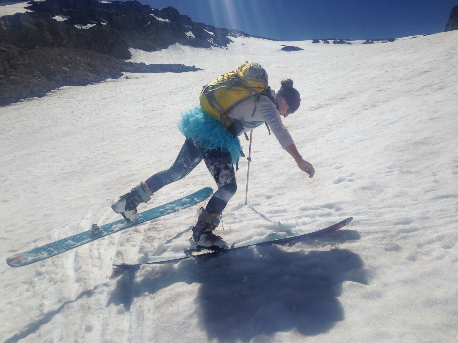 Then it was time to ski! I’m not going to lie you – it was terrible: crabby, gloppy, sticky. Schmoo. I don’t know if you can even really call it skiing, but we did get about 1500′ of turns and that’s good enough for me to count 44-months of Turns All Year. Even though we hiked 6 hours (4 hours up, 2 hours down) to ski for 10 minutes, it was a damn good day. #TeamTutu is always stoked to get outside.